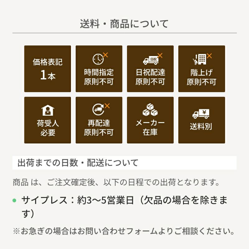• サイプレス:約3〜5営業日(欠品の場合を除きます)