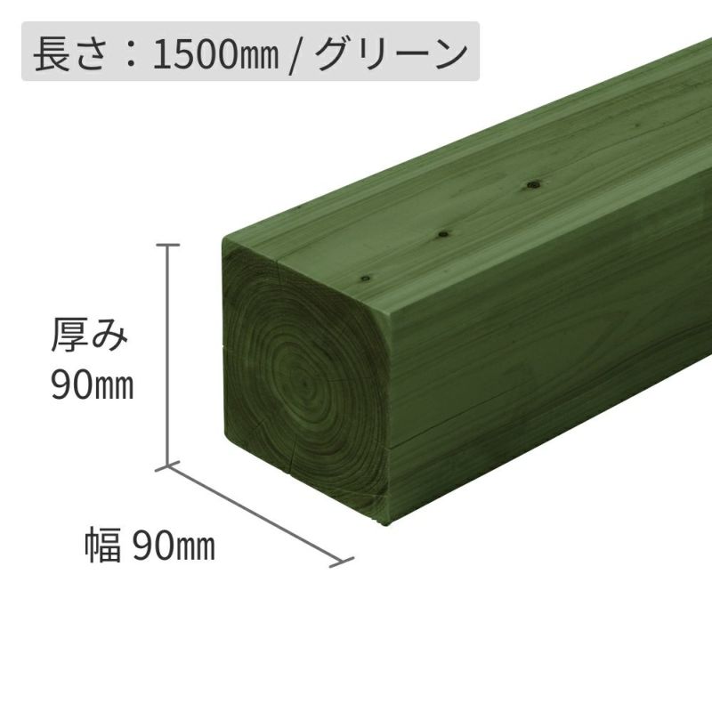 【納期1か月程度】ひのき材(節付き)・防腐加工+塗装/90×90×1500