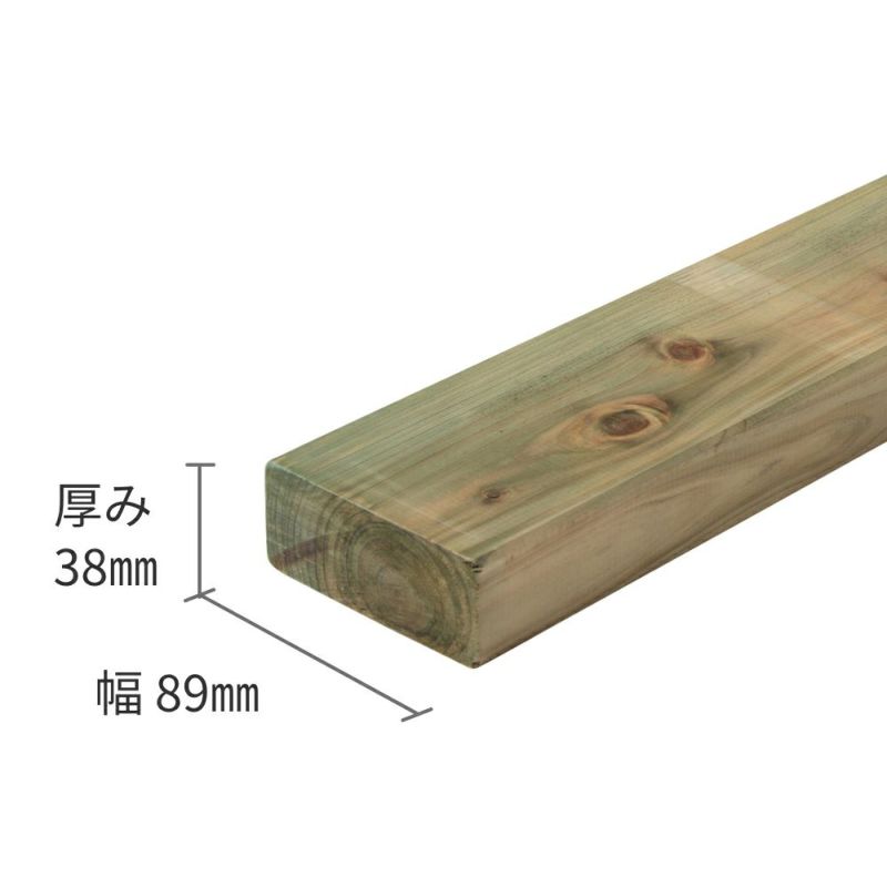 【納期2-3週間】ひのき材(節付き)・タナリスCY防腐加工/38×89