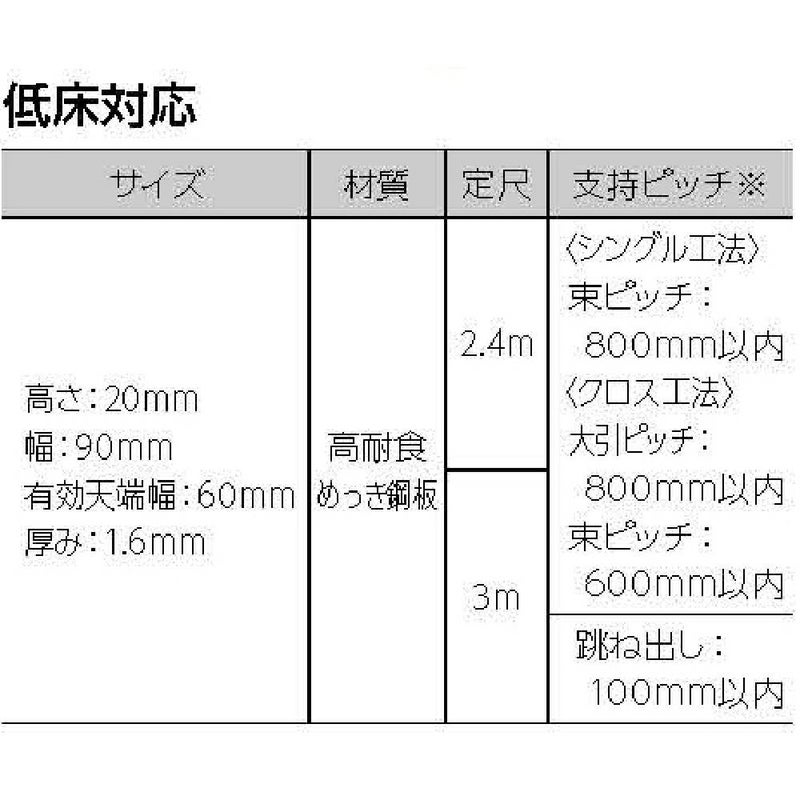 サイズ:L=2400 高さ:20㎜ 幅:90㎜ 厚 み:1.6㎜ 重 量:4.8kg/1本