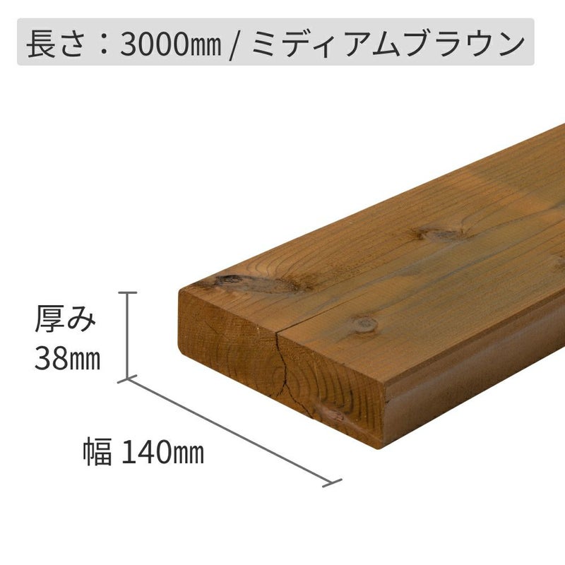 【納期1か月程度】杉材(節付き)・防腐加工+塗装/38×140×3000