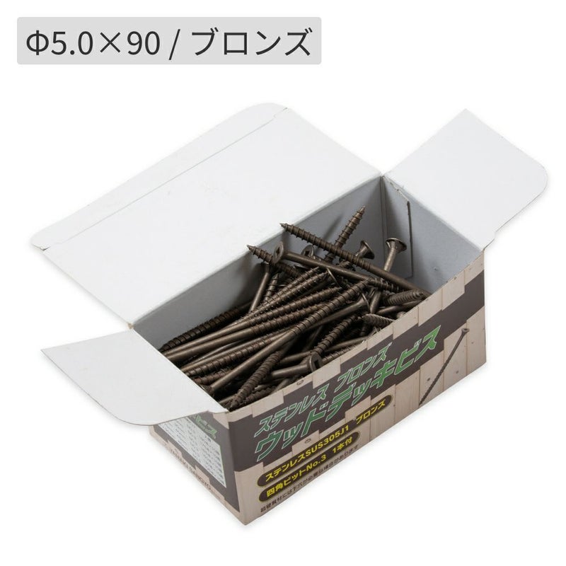 単 位:105本/1箱 材 質:SUS305 色 目:ブロンズ 頭 部 形 状:四角穴 ※1箱につき四角ビットNo.3が1本付きます。